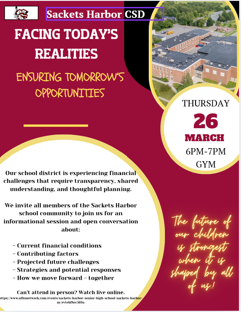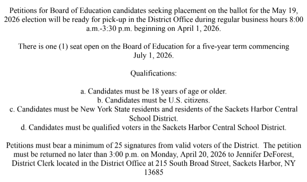 The Sackets Harbor Central School District is dedicated to educational excellence as we empower our students to embrace life’s challenges, with knowledge, character, and a commitment to learning as they become contributing citizens in the American democratic way of life.